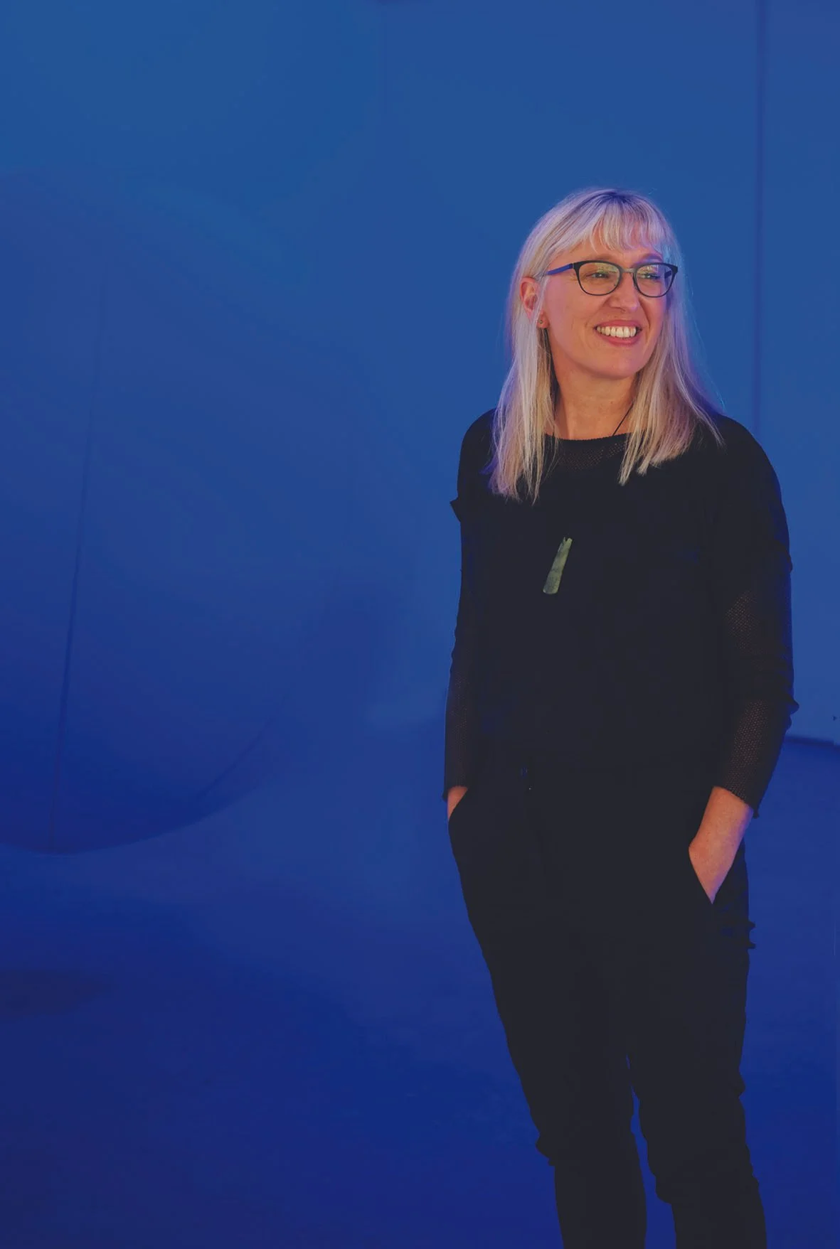 Karen Sewell in a flood of blue light